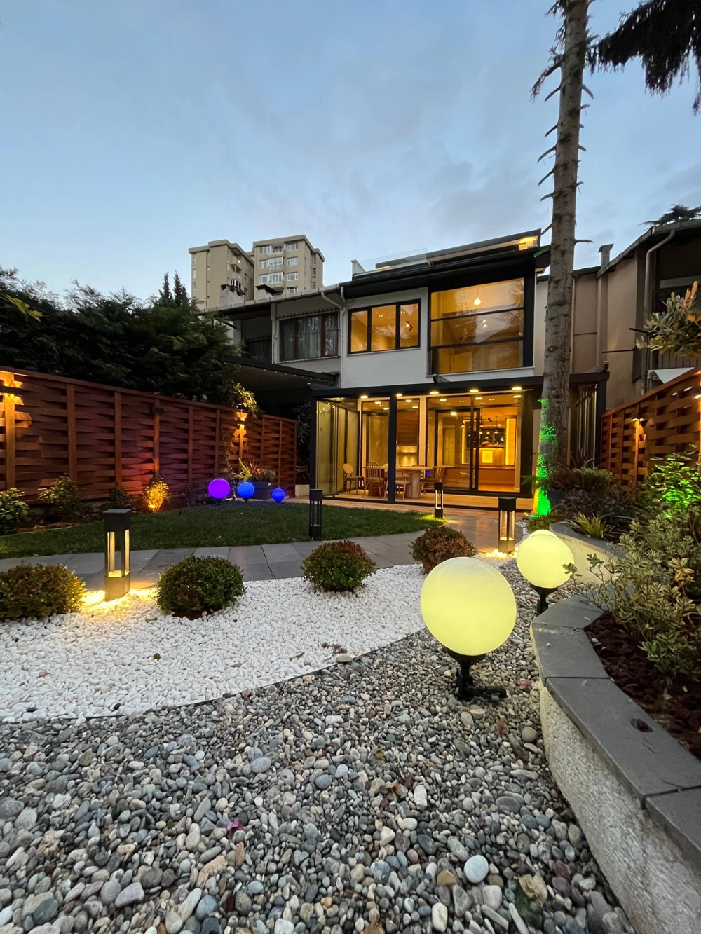 Dikey olarak yerleştirilen ahşap paneller, genellikle daha modern ve şık bir görünüm sağlar. Bu tip çitler, özellikle minimalist bir tasarım isteyenler için idealdir. Dikey panellerin arasındaki mesafe geniş tutularak, hem görünürlük hem de mahremiyet sağlanabilir.